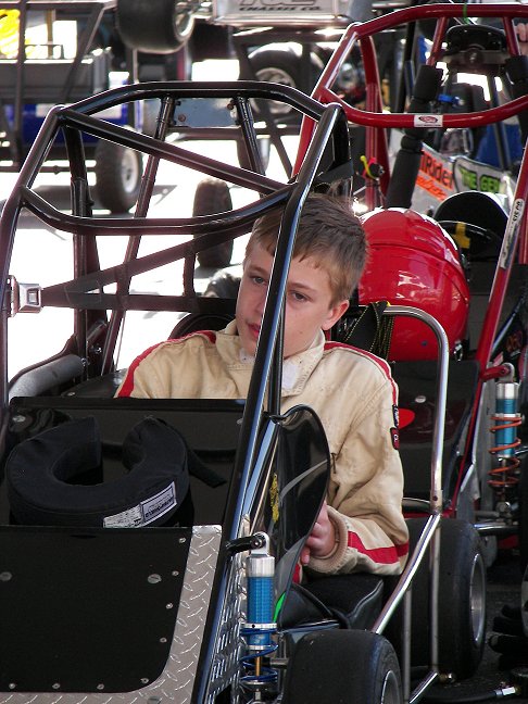 In 2006 Austin raced in Sr. Novice. In 2007 he is racing Heavy Honda (120CC Honda) with the Orange car. We plan to convert the Orange car to Heavy 160 and bring the 2005 Extreme (black car) out to finish the season in Heavy Honda. We will probably do this for the fall mini series at Toledo. He has been struggling a bit more this year then I had anticipated, but he is starting to get it figured out and is leading some laps from time to time. A little slow learning curve, but more seat time in two cars will help him get better. I will post a full summary on his season when the season has concluded.